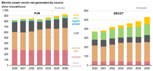 By now, our clients have read multiple North Sky reports on the rapidly growing demand for electricity, due to EVs and computing needs. This trend continued in Q4. Particularly relevant to our portfolio, the Energy Information Administration’s Energy Outlook for December cited the Mid-Atlantic/Ohio Valley region (known as “PJM” territory) and Texas (known in the power industry as “ERCOT”) as the fastest-growing areas for electricity use. As shown on the charts below, solar capacity within those regions is projected to expand 63% from 2024-2026 in PJM, and 92% during the same period in ERCOT. North Sky has investments in solar and energy storage projects in both regions.